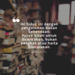 "Isi hidup ini dengan pengalaman bukan kebendaan.